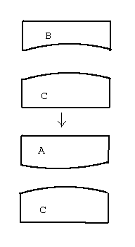 The concave surface of B will make a convexity on C and A will not fit C ( convex to convex).