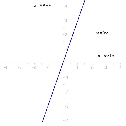 In our function y=3x, y changes 3 for every x. We can say that the rate of change of y with respect ot x is 3. This rate of change is also called the slope.