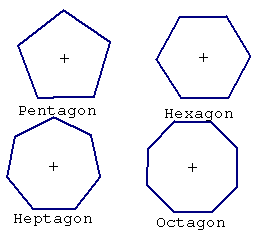 Polygons are many sided figures ( from the Greek, pollos, many, and gonos, side). They are figures which have more sides than a triangle.