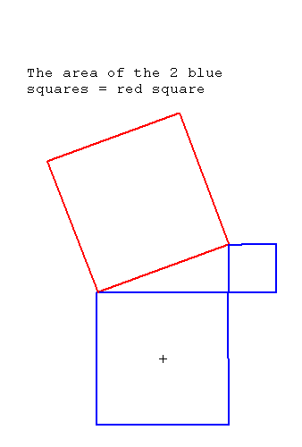 The area in the square on the longest side (the "hypotenuse") is equal to the sum of the areas in the other two squares.